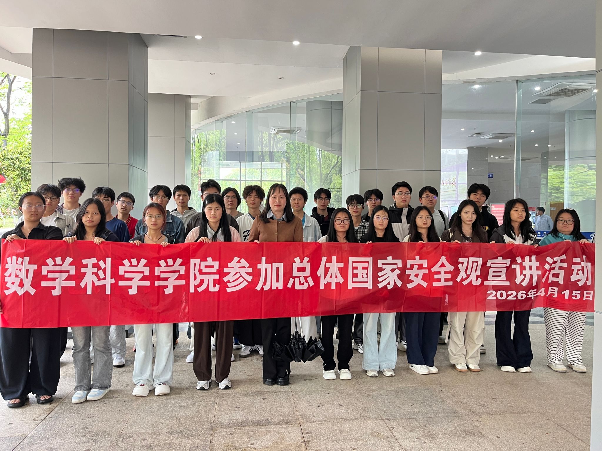 为迎接全民国家安全教育日,4月15日,数学科学学院在红角洲校区组织开展系列国家安全教育主题活动,并联合学校保卫处组织师生代表赴南昌大学(红角洲校区)参加江西省大学生总体国家安全观宣讲团专场宣讲活动,引导青年学子树立总体国家安全意识,自觉肩负维护国家安全的责任。上午,学院以班级为单位开展国家安全主题教育班会。各班围绕国家安全核心要义,结合政治安全、网络安全等与学生密切相关的领域,通过案例剖析、法规解读等形式,...