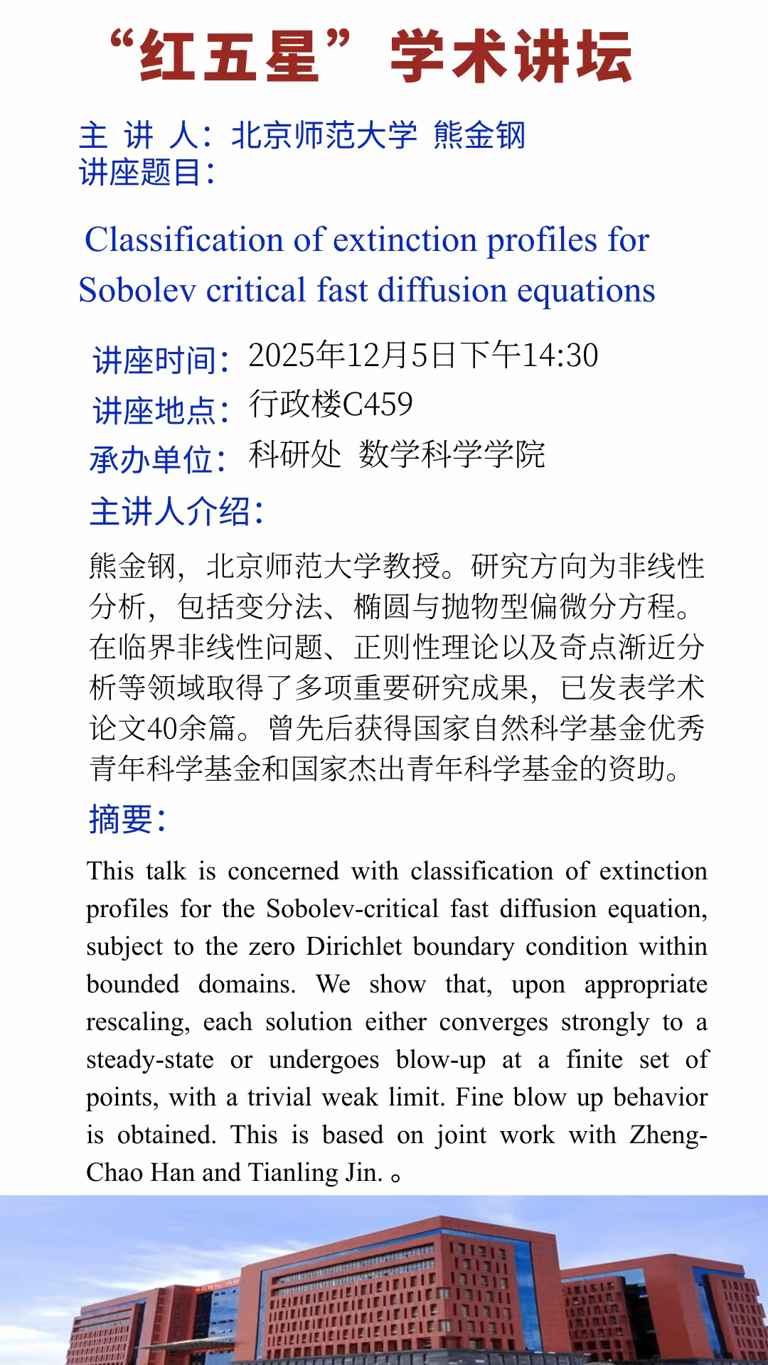 “红五星”学术讲坛| 20251205 熊金钢教授(北京师范大学)