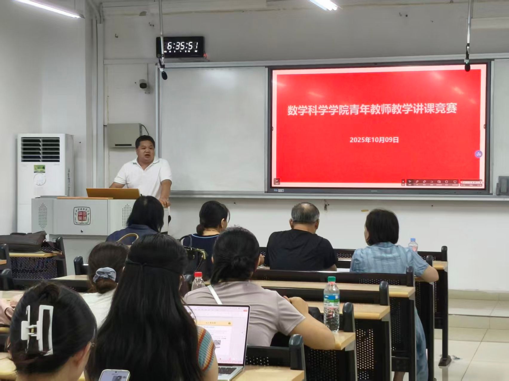 10月9日,数学科学学院在红角洲校区逸夫楼Y211教室成功举办了青年教师教学竞赛。活动旨在提升青年教师教学能力、激发教学创新,15名青年教师参赛,展现了饱满的教学热情与扎实专业功底。