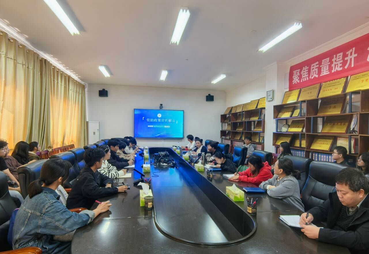 10月23日,数学科学学院在红角洲校区弘德楼C459会议室组织召开资助政策宣讲会。会议由学院党委副书记刘兴主持,各年级辅导员、班主任及各班主要学生干部共同参会。
