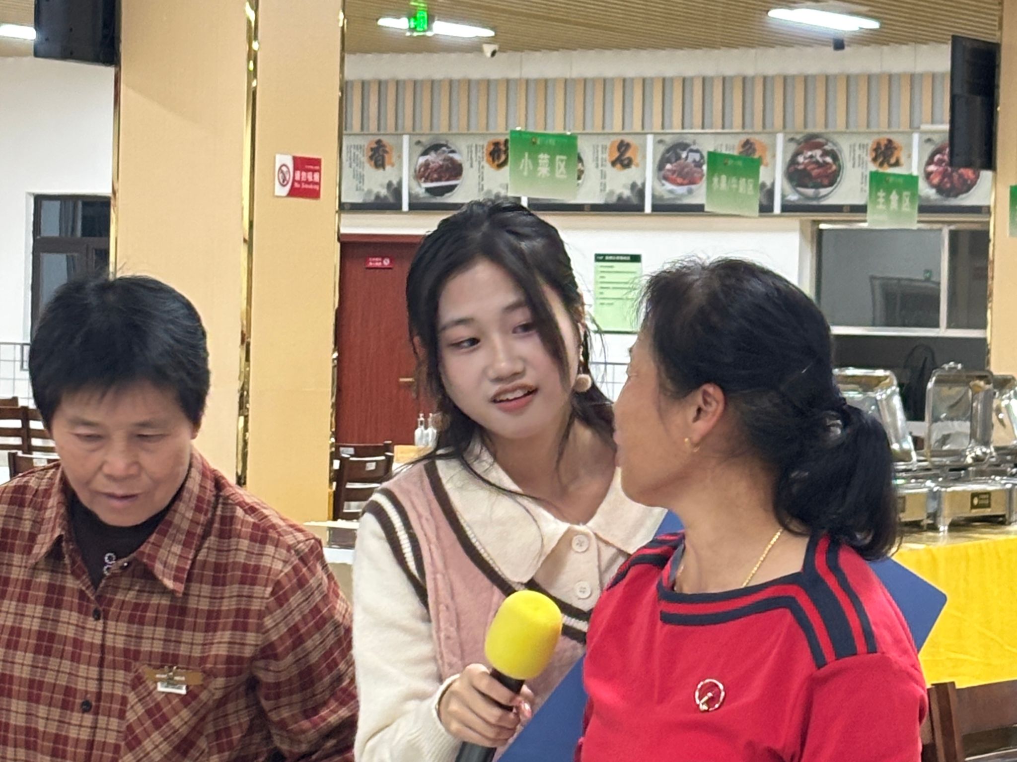 活动当日,志愿者们提前抵达活动地,有序引导老人们签到入座,全程主持流程、维护秩序,确保活动流程衔接顺畅。互动环节特别设置了“红色记忆”趣味问答,围绕党史军史、英雄事迹等内容与老人们亲切交流,现场气氛热烈,迅速拉近了彼此的距离。在“百家宴”分享环节中,志愿者摆放好一盘盘热腾腾的饭菜,主动服务、细心照料,及时关注大家的用餐需求,充分表达对菜品制作者的由衷赞美,跟着老人们一起交流学习烹饪技巧。活动结束后,志愿者们协助发放慰问物资,并认真清理现场,展现出高度的组织纪律性与责任担当。