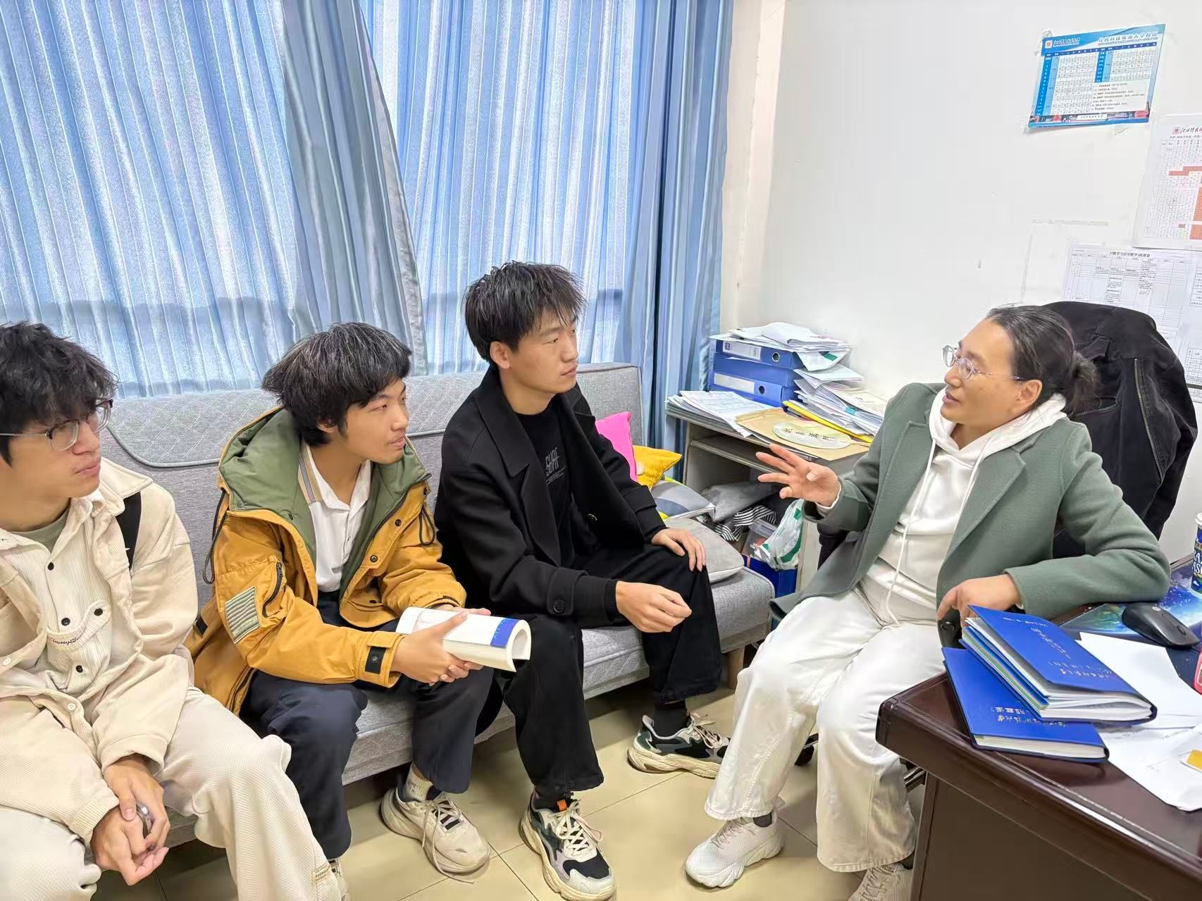 活动采用“班主任+学生骨干”共同负责的方式,在新生入学前就建立个人帮扶档案,提前了解他们在学业、生活等方面的具体需求。活动安排分为定期交流和随时支持两部分:每周设有固定时间,围绕课程学习、时间管理等话题开展集体交流;同时保持沟通渠道畅通,随时为有需要的同学提供一对一帮助。学生骨干结合自身经历进行朋辈分享,班主任则重点关注同学们的心理状态和成长引导,共同帮助新生提升适应能力、树立发展信心。
