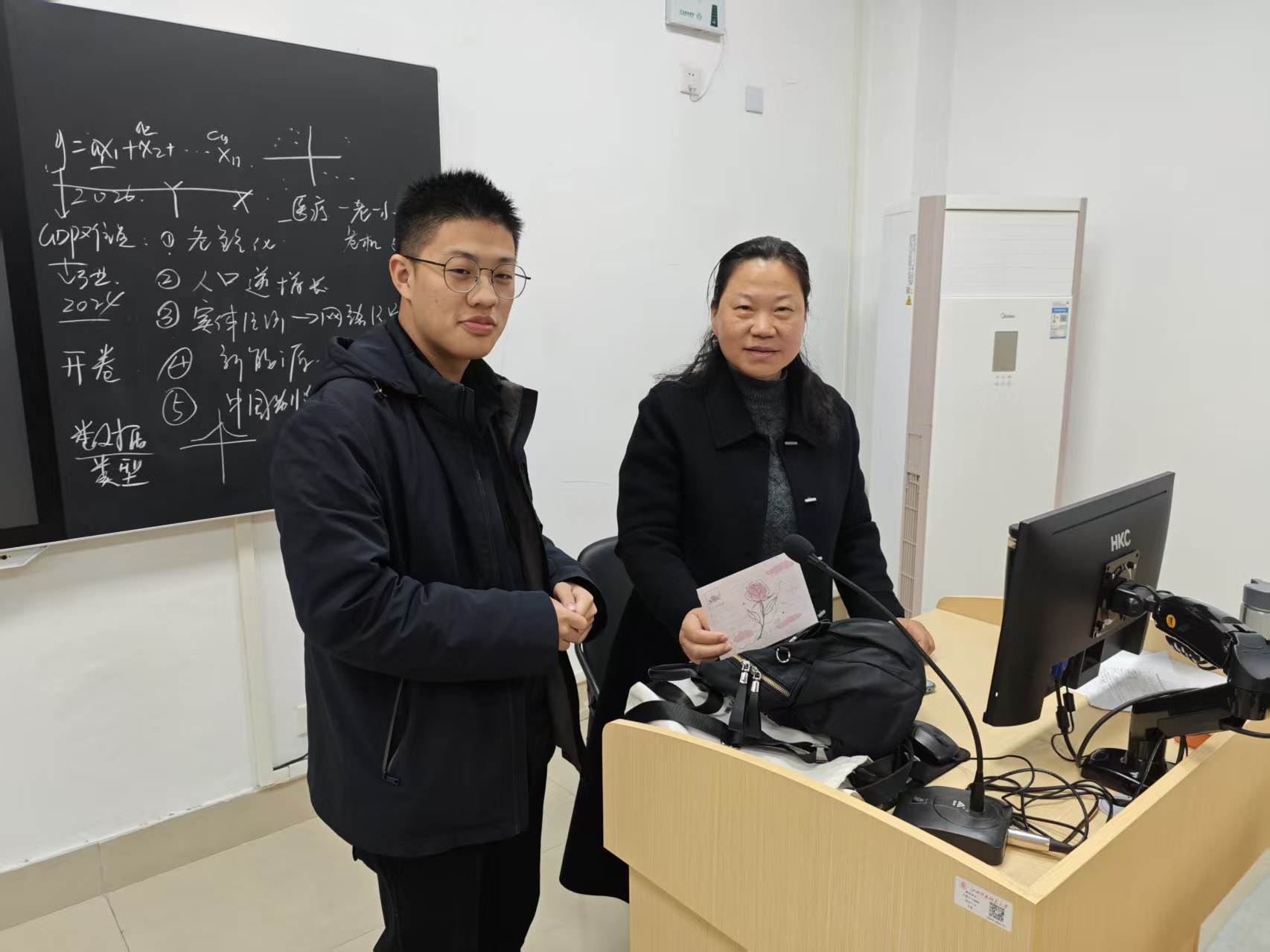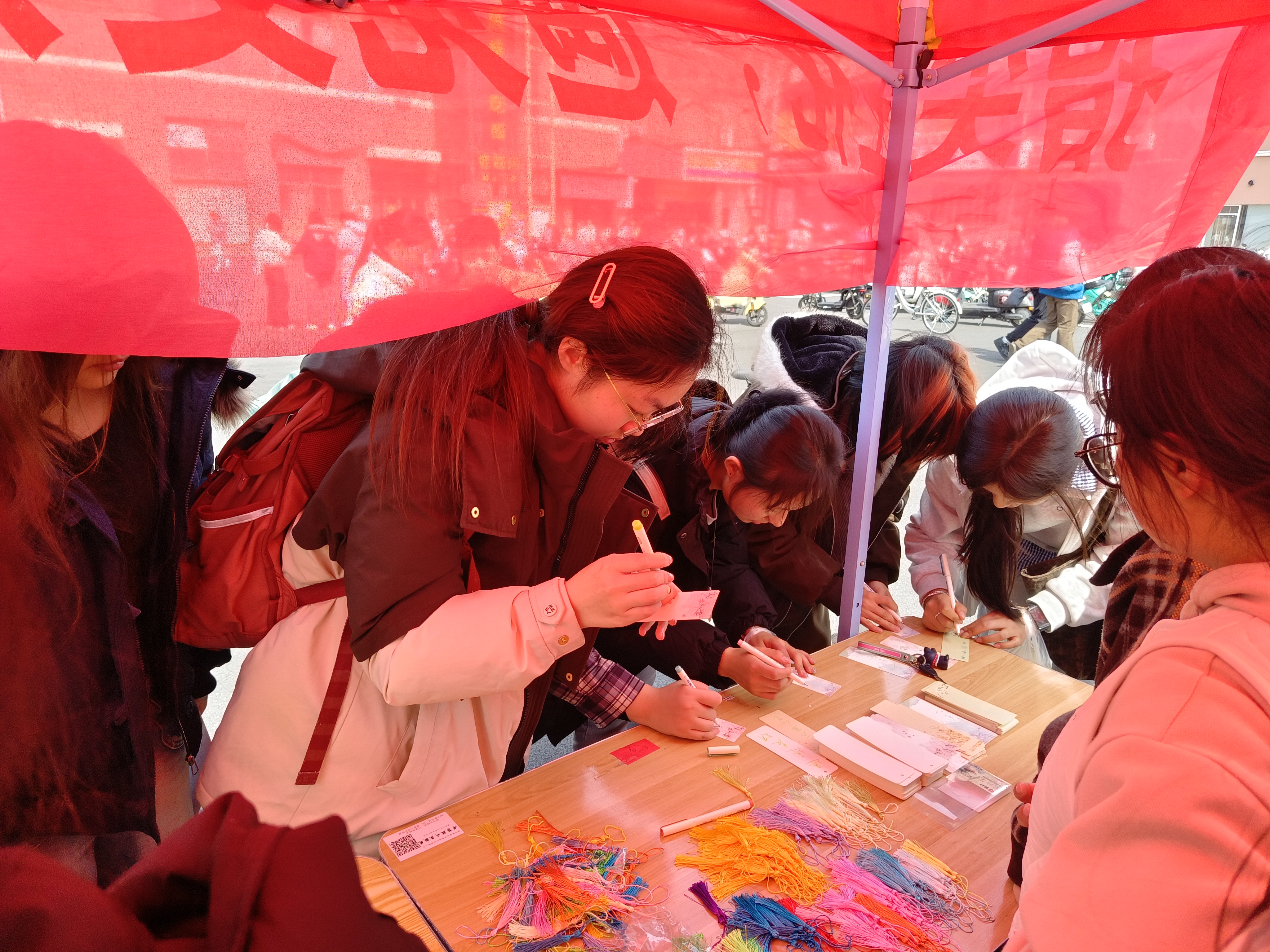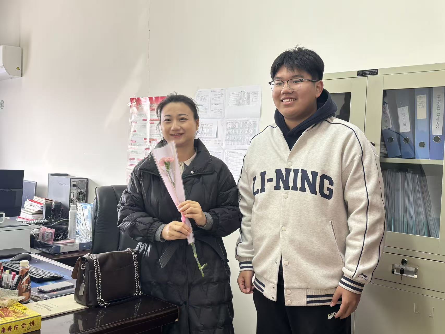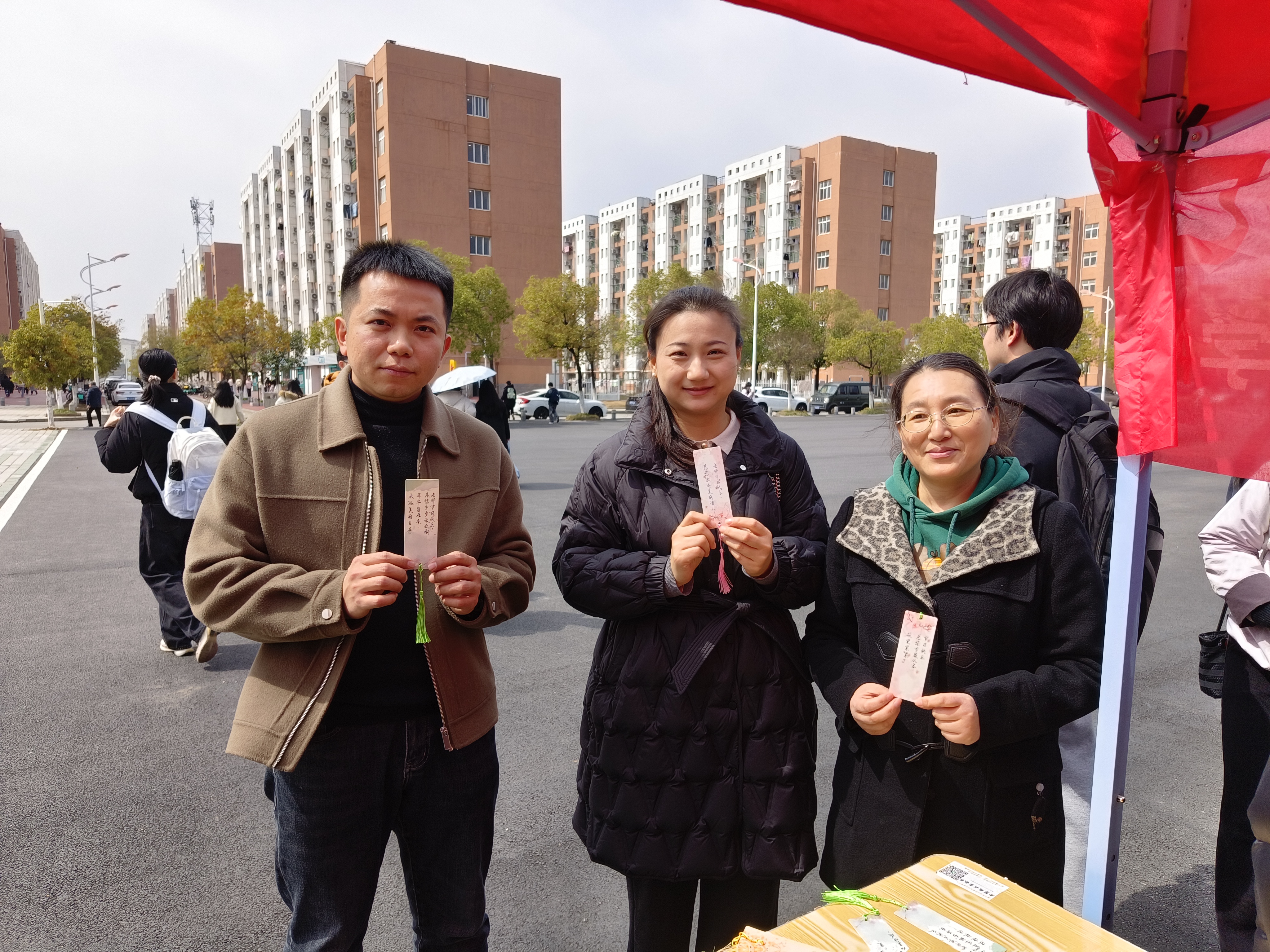 本次活动设置手串DIY、手写书签两大体验区域。现场氛围温馨而热烈,手串DIY体验区人气高涨,女生们精心挑选搭配各色珠饰,将一颗颗晶莹的珠子串联成个性十足、独一无二的精美手串;手写书签体验区内,大家挥毫落笔,以简洁真挚的文字写下自我勉励、同窗祝福与师恩致谢,字字温情满满。学生代表还带着亲手书写的贺卡与精心挑选的鲜花走进各教职工办公室,将满载心意的礼物赠予老师们,以手作之礼致敬师恩,传递师生间的深厚情谊。