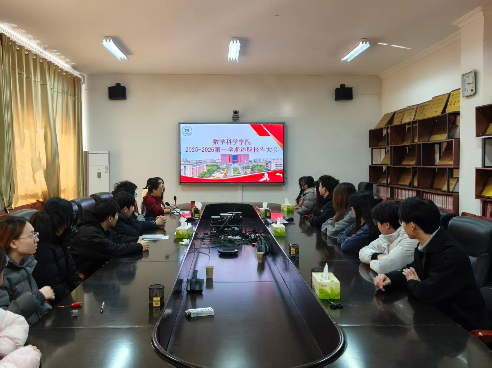 2026年1月14日,数学科学学院于红角洲校区C459会议室召开学生会述职评议会。学工办负责人郑睿颖及全体学生会骨干参加会议。
