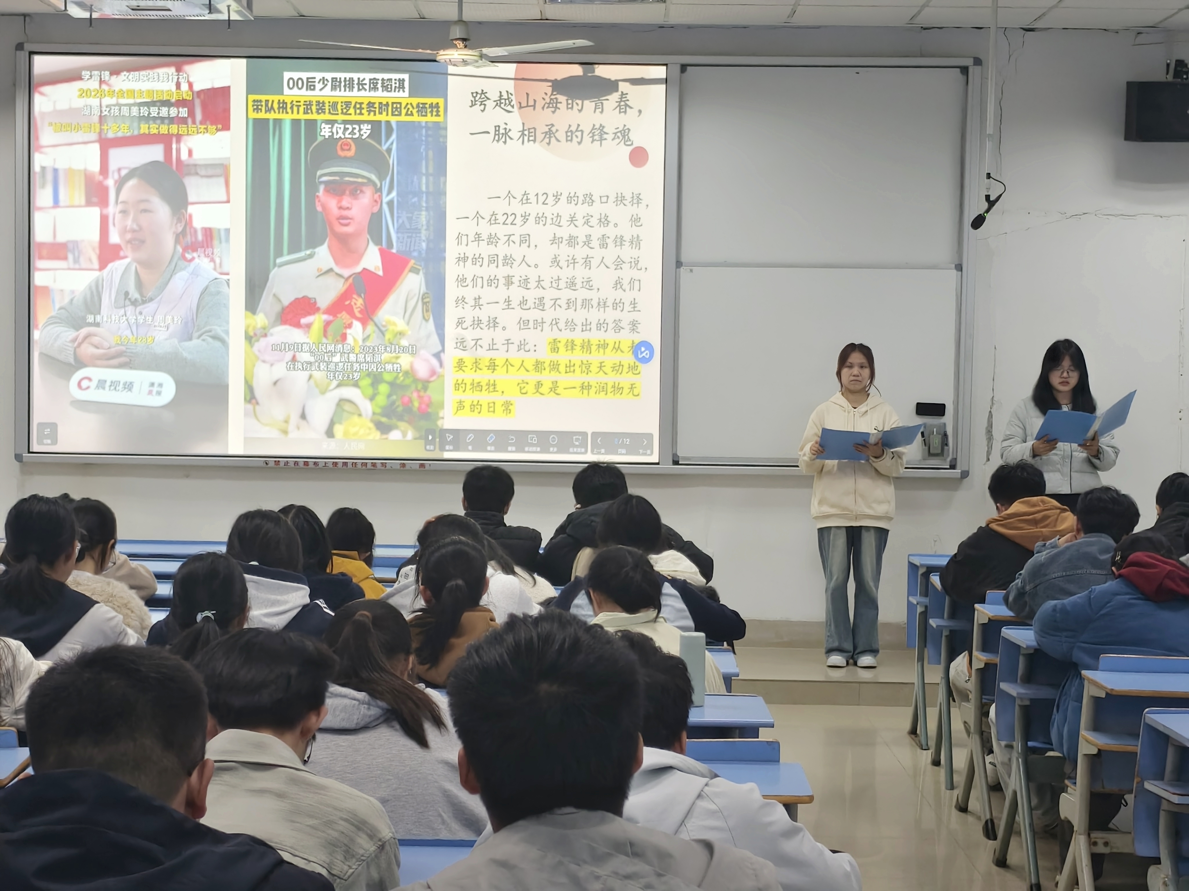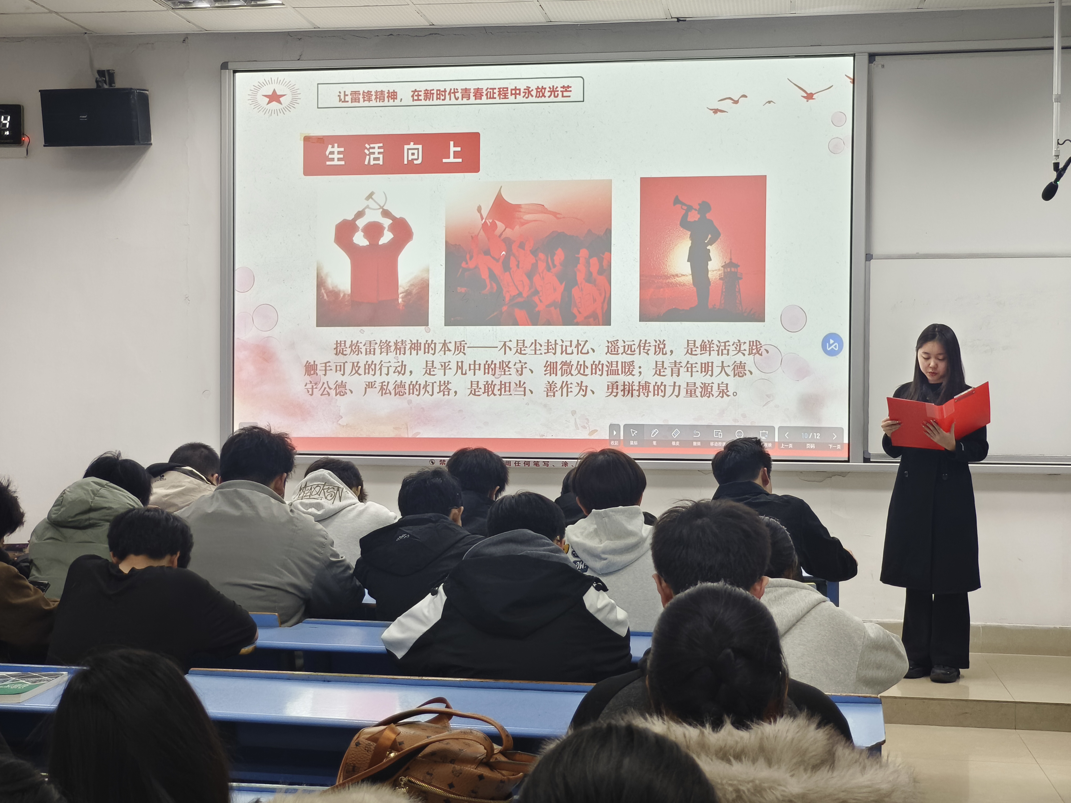 宣讲团成员围绕雷锋精神的核心内涵与时代价值展开解读,阐释了其中“向上”的人生追求与“向善”的价值底色,包括忠于职守的“钉子精神”、艰苦奋斗的进取态度,以及服务人民、助人为乐的高尚品格。结合新时代青年的使命担当,宣讲团鼓励同学们将雷锋精神内化于心、外化于行,把崇高理想信念转化为帮助同学、服务社区、勤学笃志、砺能强技的实际行动。大家纷纷表示,通过此次活动,对雷锋精神的时代内涵有了更深刻的理解,也更加明晰了作为新时代青年传承雷锋精神的责任。