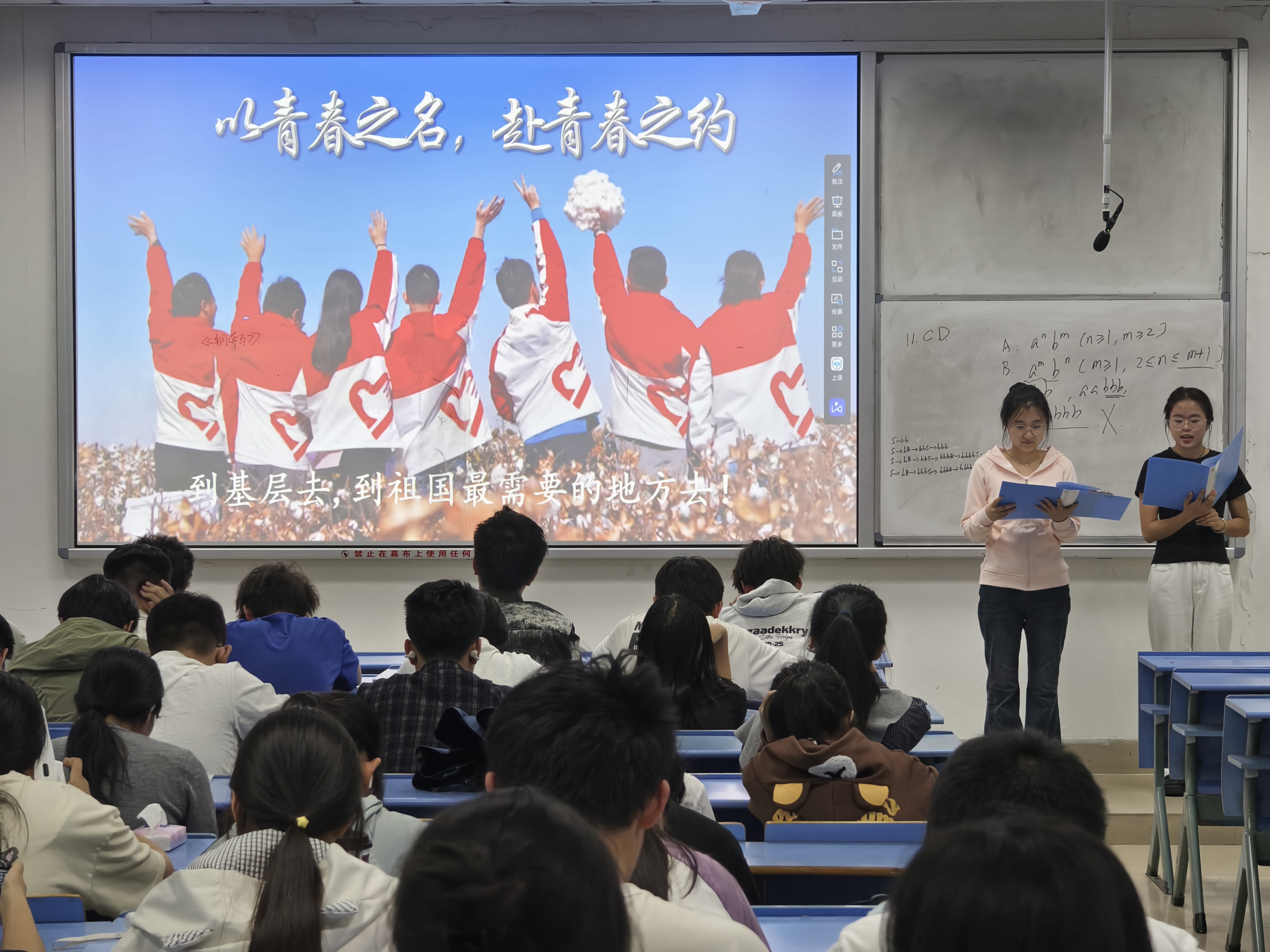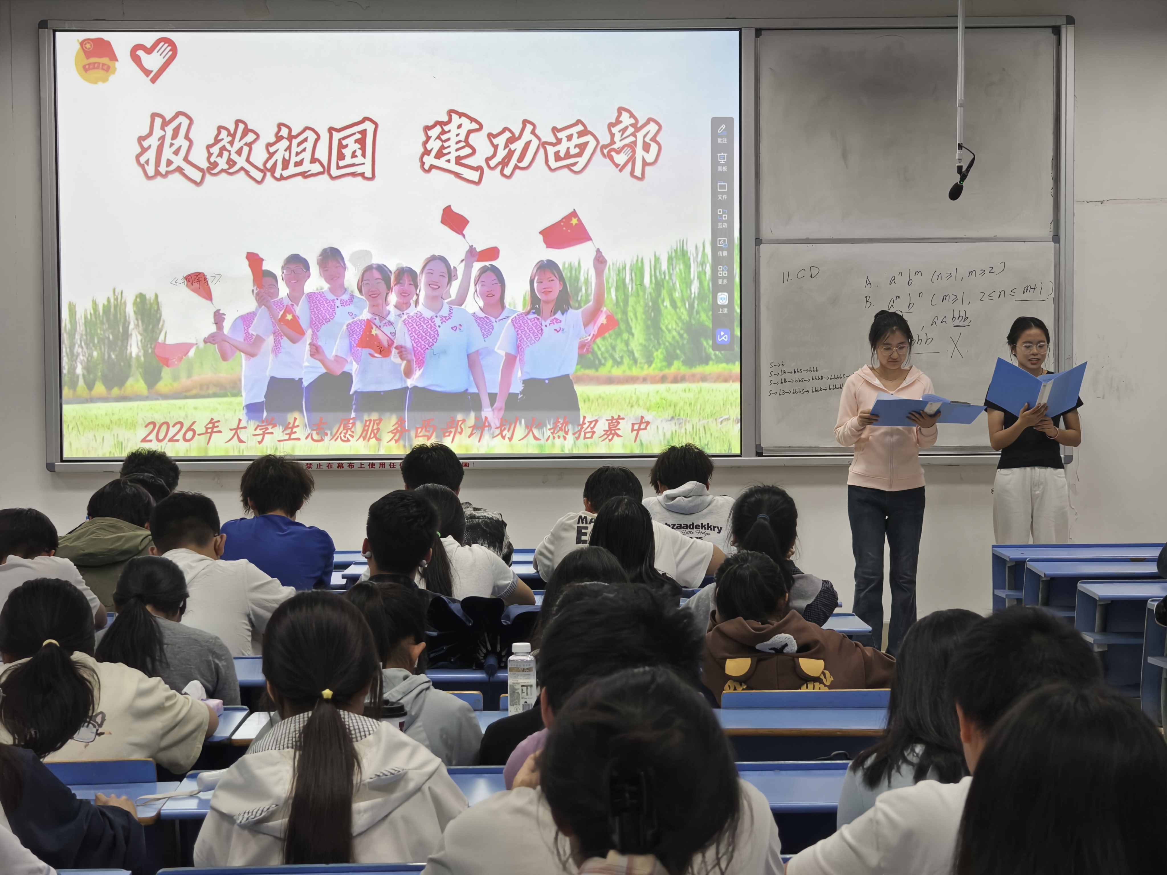 活动中,宣讲团通过情景互动与故事讲述,引导同学们深入思考青春的价值。大家共同学习了国家鼓励青年赴基层就业的政策,进一步领悟基层是梦想启航的舞台,认识到去基层不是将就,而是担当;不是牺牲,而是获得。同时,活动也帮助同学们进一步理解“奉献、友爱、互助、进步”的志愿精神,树立远大志向、践行责任担当。最后,同学们以《到西部去》的志愿之歌为号角,喊出“请党放心,强国有我”的青春誓言,表达投身基层、报效祖国的坚定决心。